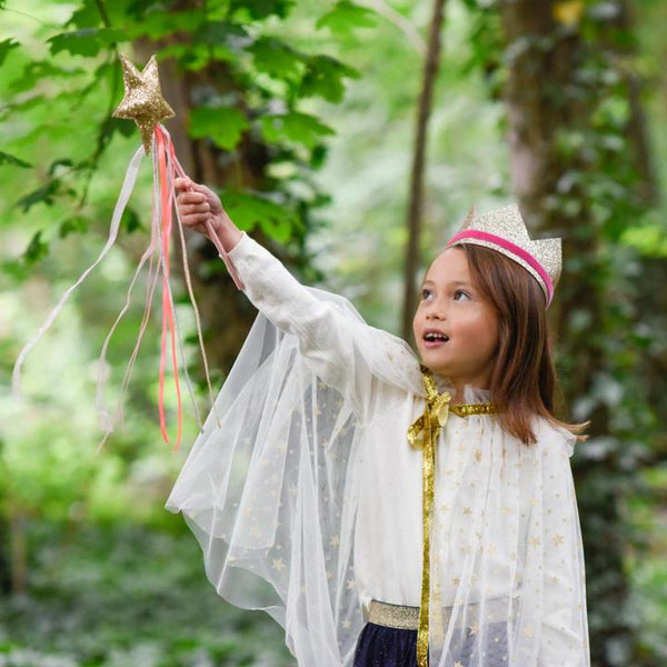 Luciole et Petit Pois Krone Farbe: Gold Glitzer Krone mit pinkem Samtband zum verschliessen
